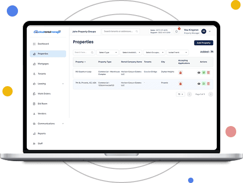 After logging in, you will land on the Dashboard. This is your starting point for managing properties.